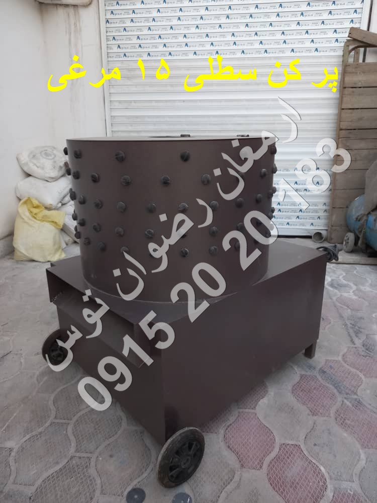 با ظرفیت 15 مرغ معادل حدودا 35 کیلوگرم و موتور سه اسب بخار با ورق ضخیم 2 میل آهنی لاستیک انگشتی درجه یک